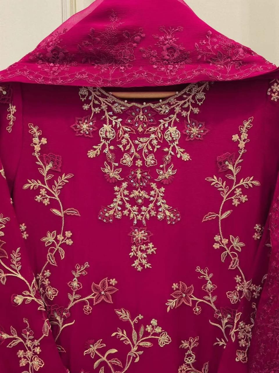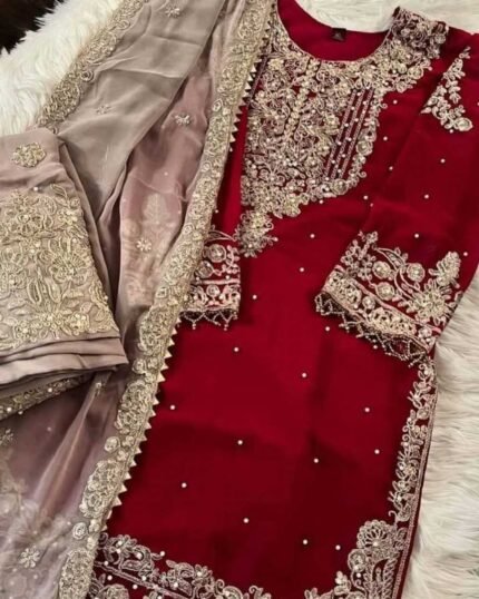 Luxury Embroidered 3-Piece Dress Set – Deep Magenta Edition