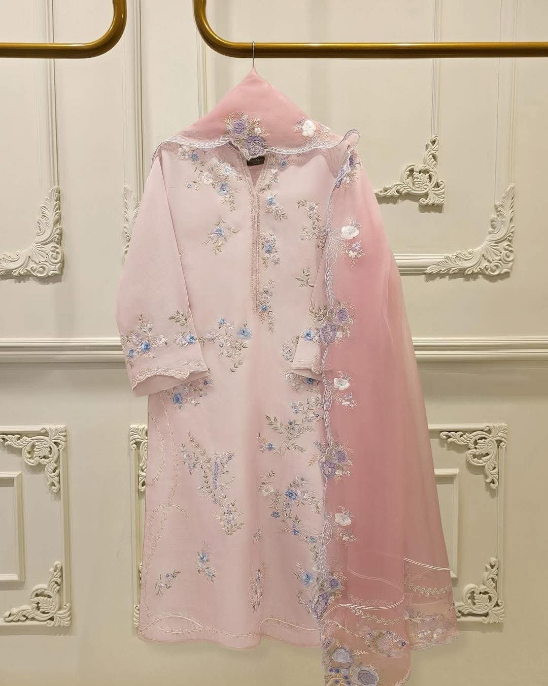 🌸 Dupatta: Luxurious Organza with elegant embroidered panel work