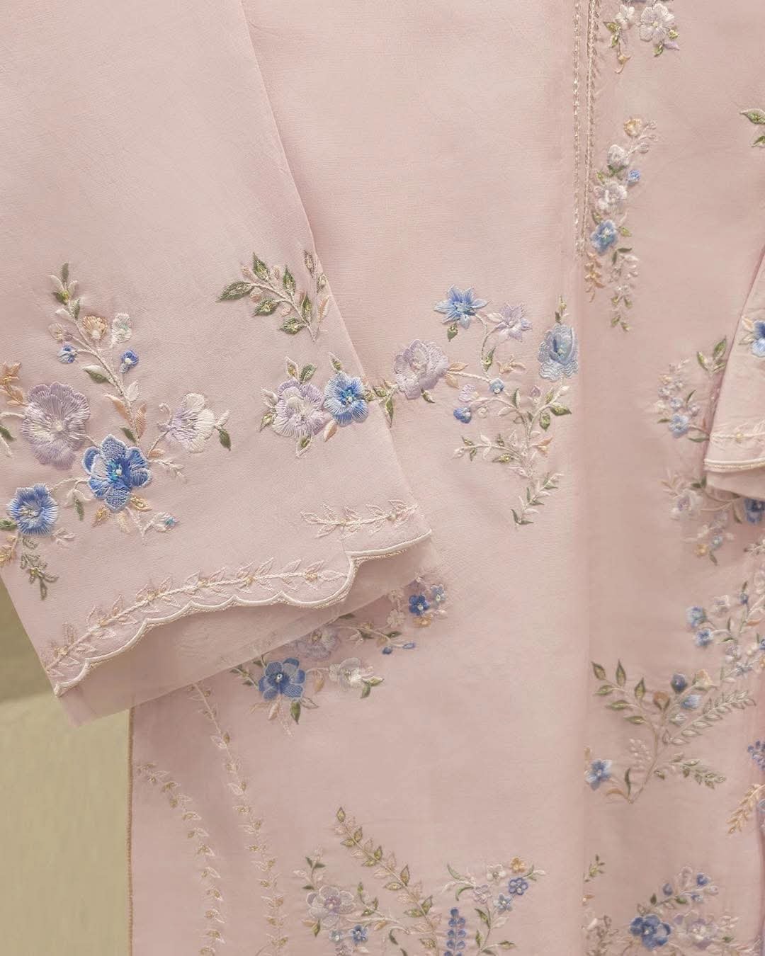 Elegant Embroidered 3-Piece Dress Set (Onion Color)