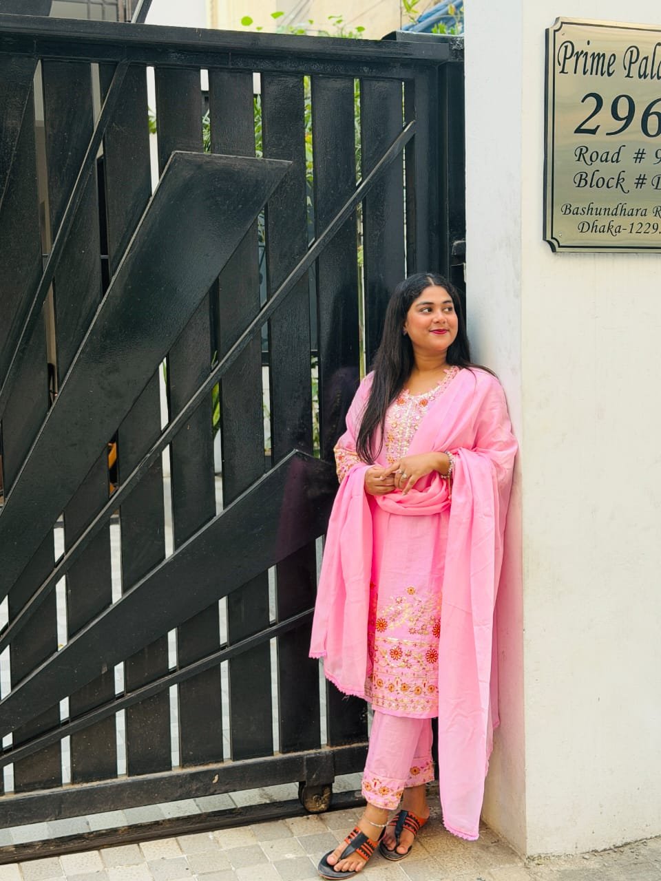 4-Piece Indian Jorjet Embroidered Suit with Inner, Cotton Pants & Chiffon Dupatta