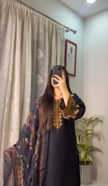 Black Traditional Embroidered 3-Piece Set