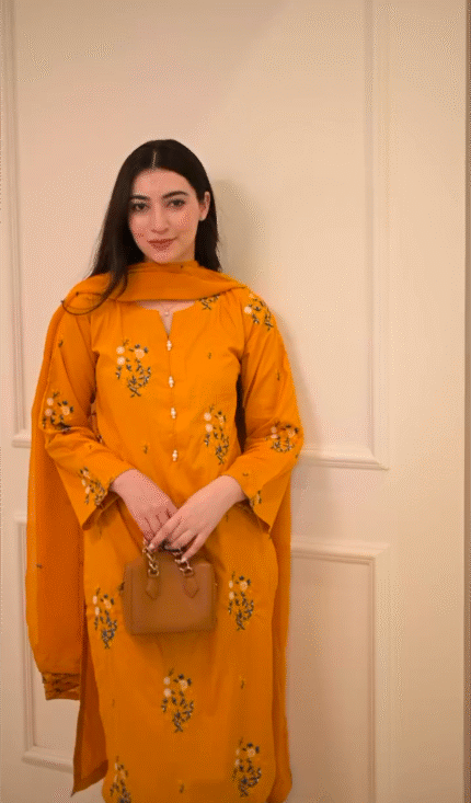 Mustard Floral Embroidered 3-Piece stitched Cotton Suit